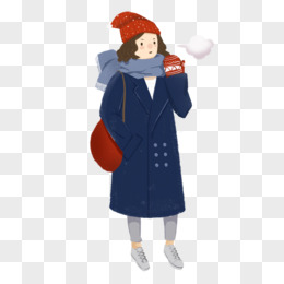 卡通手绘雪天戴围巾手套的女孩免抠元素