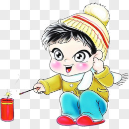 手绘卡通新年小孩们在雪地玩耍场景免抠素材