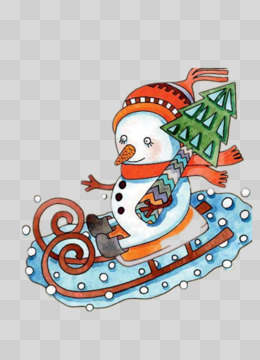 插画风冬令营雪地搭帐篷堆雪人场景元素