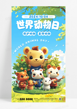 蓝色卡通可爱3d插画风世界动物日保护动物海报