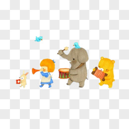 手绘卡通插画动物音乐合唱团场景免抠素材