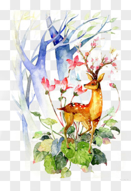 手绘插画女孩骑鹿