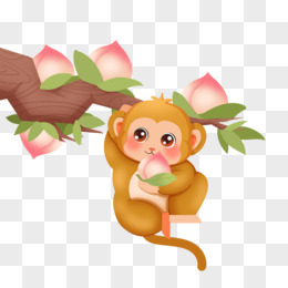创意插画可爱猴子偷桃子元素
