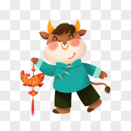 手绘卡通新年小牛手持锦鲤挂件卡通手绘元素