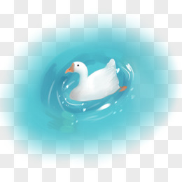 手绘游泳的大白鹅免抠元素