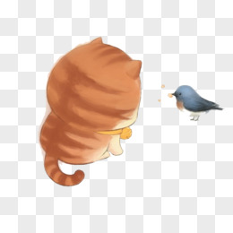 可爱布偶卡通动物 猫和小鸟