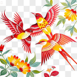 插画风格动物浮雕风格鸟免抠元素