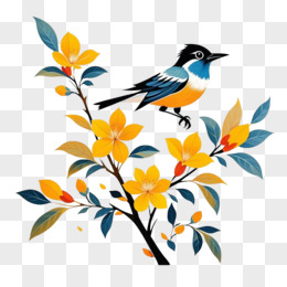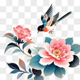 水墨风格花鸟的插画的免抠元素