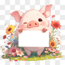 手绘插画立体卡通动物小猪边框元素