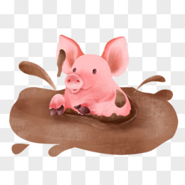 手绘插画风小猪跳泥坑元素