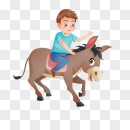 手绘插画元素骑驴的男孩元素