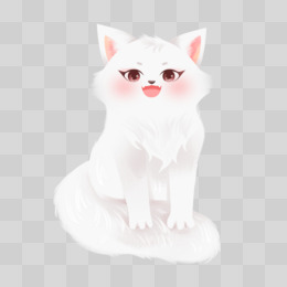 手绘动物雪白白狐素材