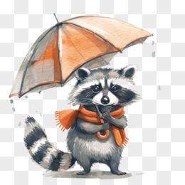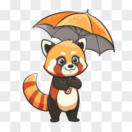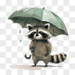卡通小动物打伞插画免抠元素