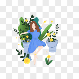 手绘插画风闺蜜一起遛狗场景免抠素材