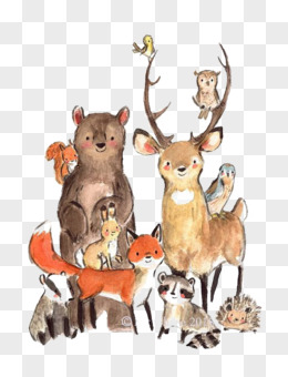 手绘卡通人与动物插画素材