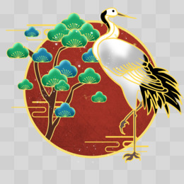 手绘国潮风仙鹤插画