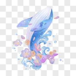蓝鲸花卉唯美插画元素