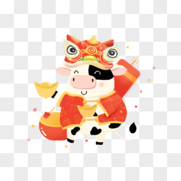 新年牛手拿福字挂件卡通手绘形象