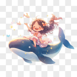 女孩骑蓝鲸唯美插画元素