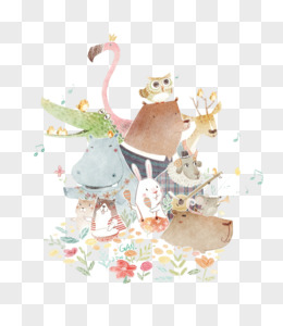 手绘插画风小狗陪伴老人庆祝生日节日场景元素