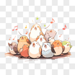 手绘卡通插画动物音乐合唱团场景免抠素材