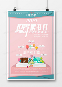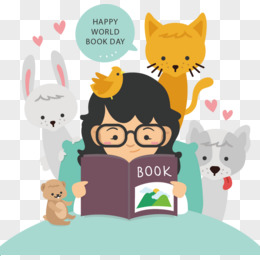 卡通小猫拟人化小猫读书学习世界读书日元素