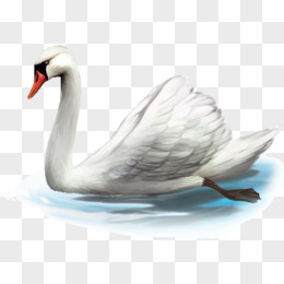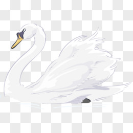 手绘游泳的大白鹅免抠元素