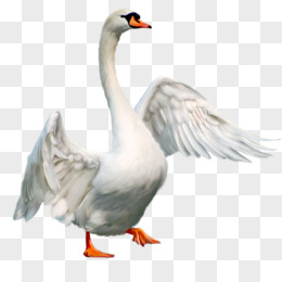 手绘水池中的大白鹅免抠元素