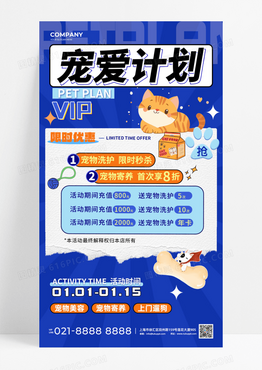 蓝色简约宠爱计划宠物动物手机宣传海报活动促销