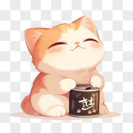 卡通风宠物萌宠抱着罐头的小猫免抠元素