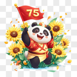 卡通熊猫开心的拿着红旗庆祝节日免抠元素