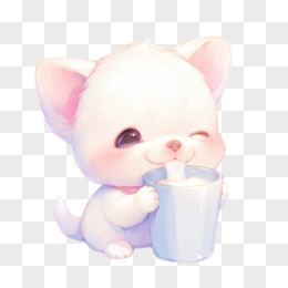 卡通风宠物萌宠喝牛奶的小狗免抠元素