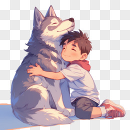 卡通风宠物小男孩抱着哈士奇免抠元素