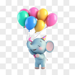 3D插画大象戴着生日帽拿着彩色气球免抠元素