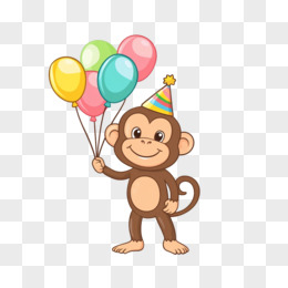 插画猴子戴着生日帽拿着彩色气球免抠元素