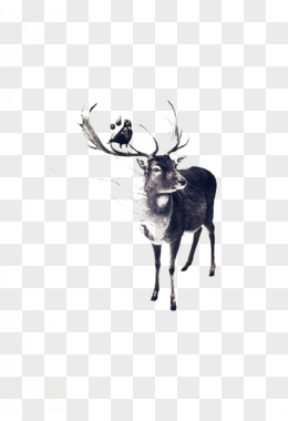手绘可爱动物驯鹿拉雪橇滑雪素材
