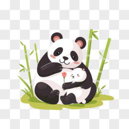 小熊猫送花给熊猫妈妈免抠元素