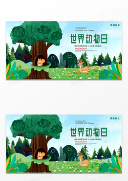 卡通手绘手托动物世界动物日保护野生动物展板设计