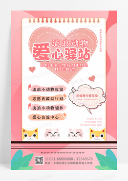 浅粉色创意卡通风格流浪动物爱心驿站宣传海报设计
