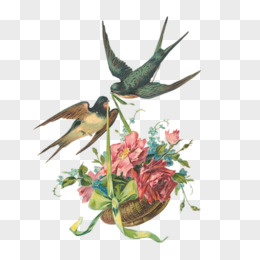手绘蜂鸟与花免抠素材