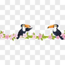卡通手绘可爱鹦鹉站立藤树花朵