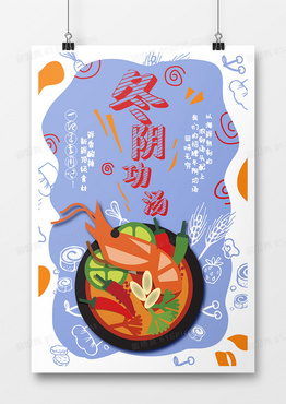 卡通创意冬阴功汤促销海报