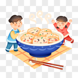手绘卡通微景观男孩女孩吃汤圆免抠素材