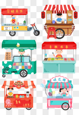 手绘夜市花甲土豆粉水果捞小摊位素材