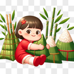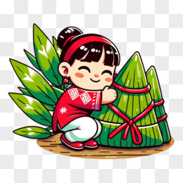 端午节小女孩和粽子平面插画免抠元素