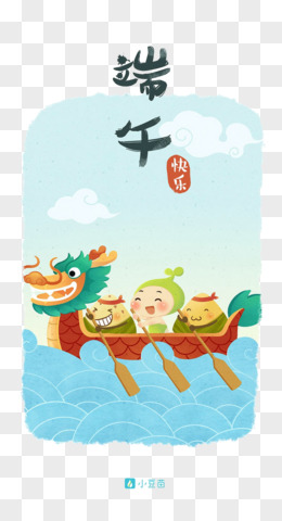手绘粽子划龙舟场景元素