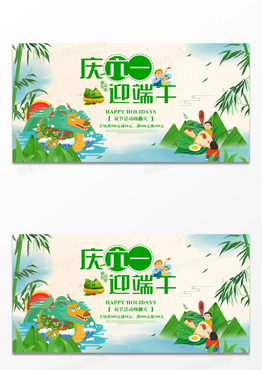 卡通国潮风浓浓端午遇上六一合成插画素材