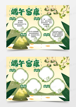 端午安康端午节粽子可爱边框中国风树叶可爱插画手抄报
