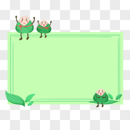 端午节粽子艾叶水墨手绘绿色植物叶子简约边框装饰