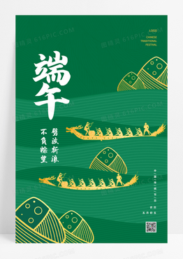 绿色创意简约大气端午节划龙舟海报
